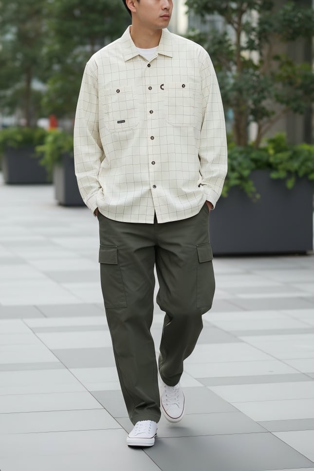 STRL 25SS Utility Outdoor Check Shirt|アウトドア ゆったり 長袖 (milky)