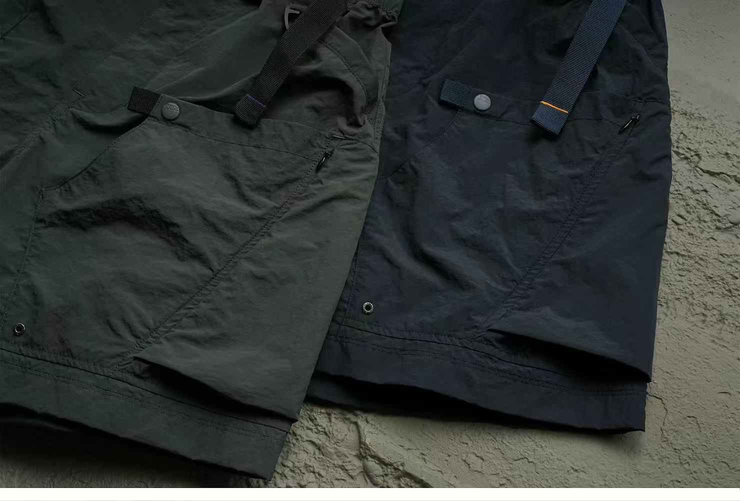 STRL 25SS アシンメトリー大容量ポケット 撥水調節可能アウトドアカーゴショーツ(Dark gray)