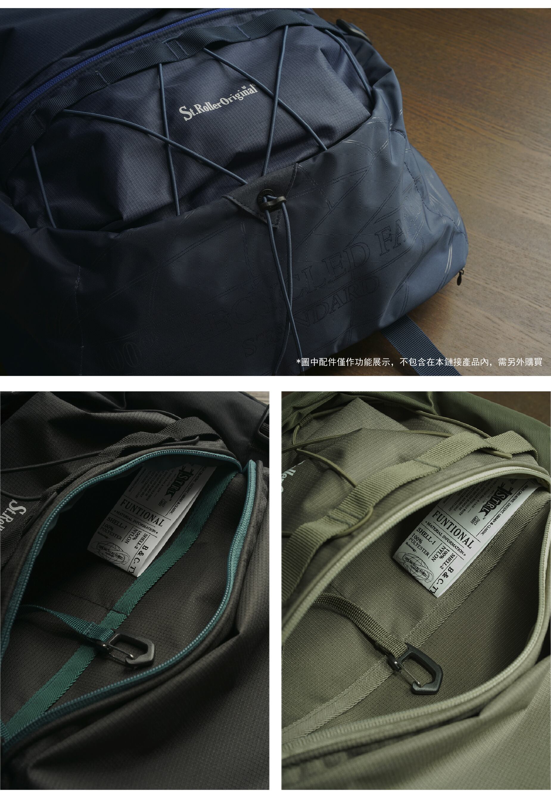 「NO PLANET B」エコシリーズの一環として開発された本製品は、夏に発売されたエコバッグのコンセプトを継承し、ブランド特注の再生エコ素材を用いて仕立てられています。バッグ本体およびショルダーストラップには高密度リサイクルナイロンのオックスフォード織りを、中央部分にはリサイクルポリエステルのチェック生地を使用。同系色ながら異なる質感の二種類の生地を組み合わせることで、シンプルながら豊かなディテールを演出しました。付属にはYKK製ファスナーとUTX製バックルを採用し、信頼性を確保。外装にはバンジーコードとモールシステムを備え、トレッキングポール、ウェア、キャンプギアなどを外付け可能とし、アウトドアでの収納力を拡張します。都市生活に戻る際には外付けギアを外すことで、実用的な通勤用バックパックへと変化。複数のコンパートメントにより荷物を効率的に整理でき、シンプルな色調と細部の工夫が日常のスタイリングに幅を与えます。さらに背面内部にはパッド入り耐衝撃仕様のPCスリーブを設置し、背負ったままでもノートPCの取り出しが可能で、背部へのサポート性も確保。多用途な収納性に加え、ミニマルな外観と都会的な配色がデイリーユースにも相性抜群です。