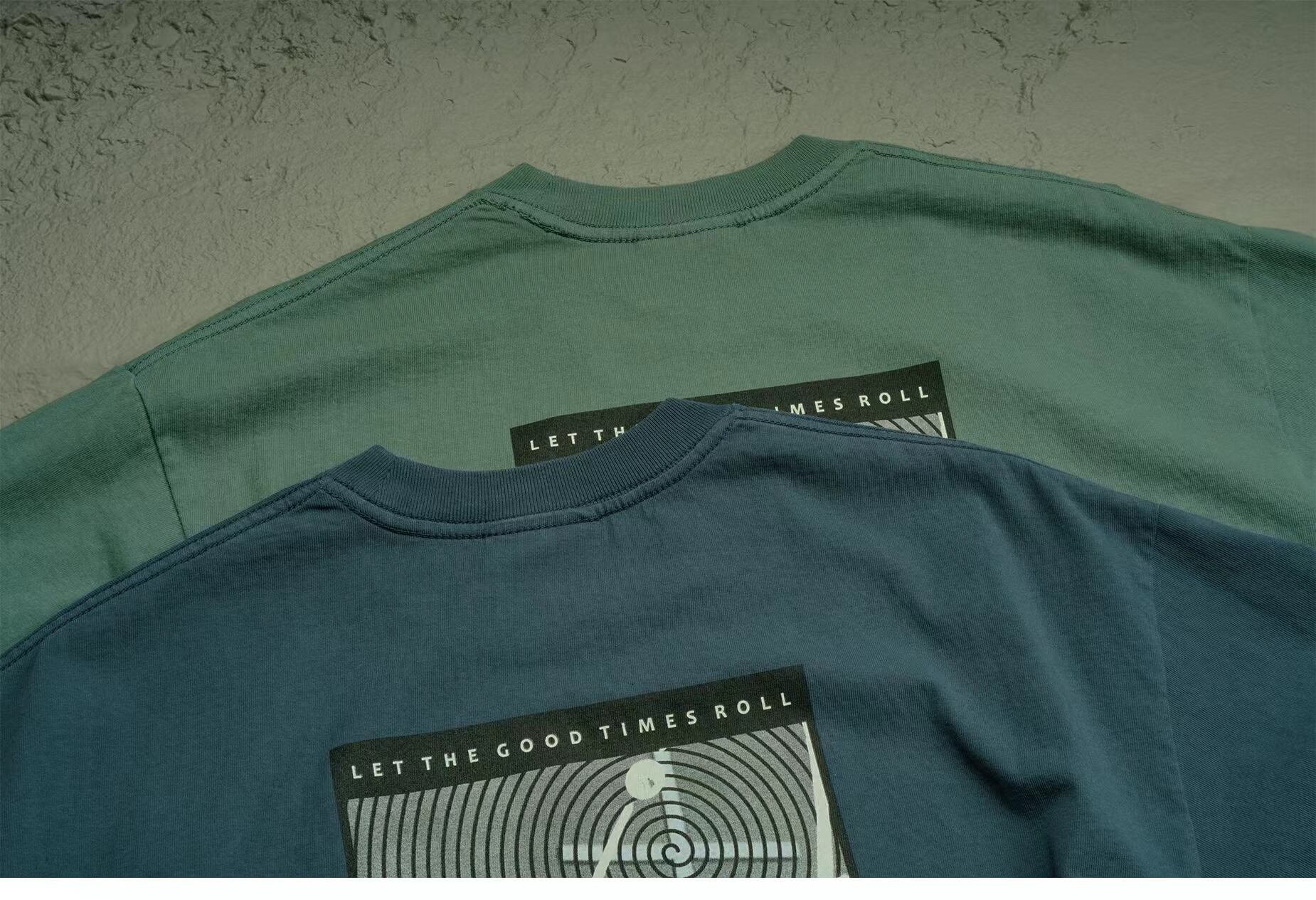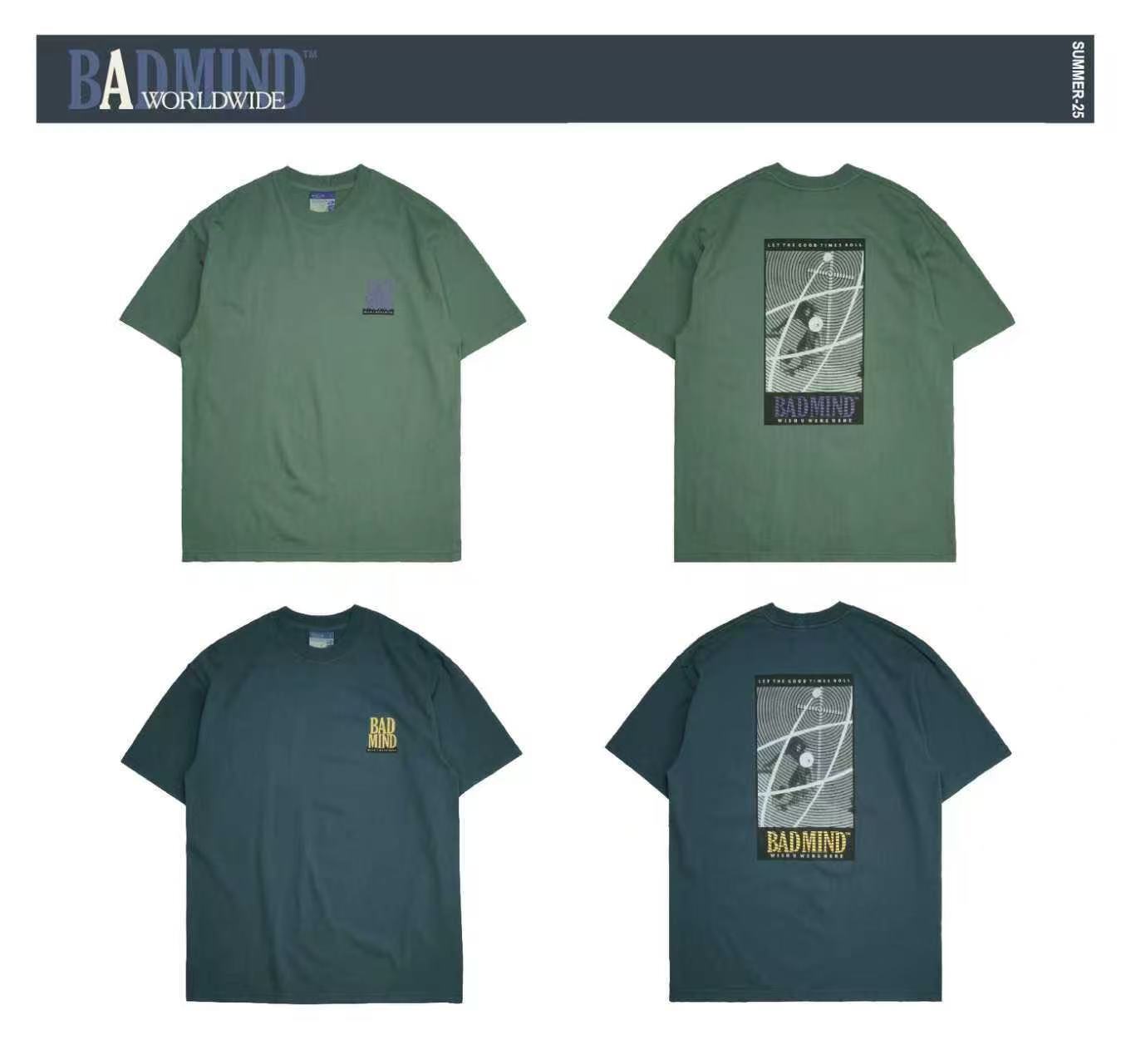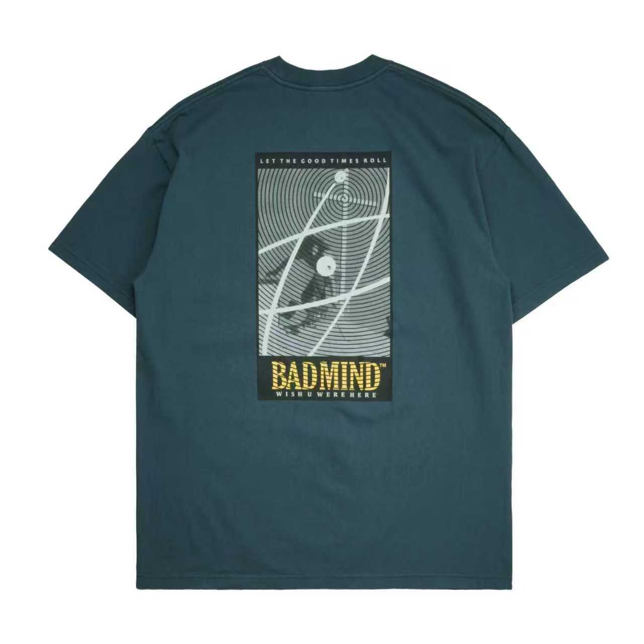 BADMIND 25SS “HOLY OLLIE” デザイン ワイドフィット チューブTシャツ(Dark Blue)