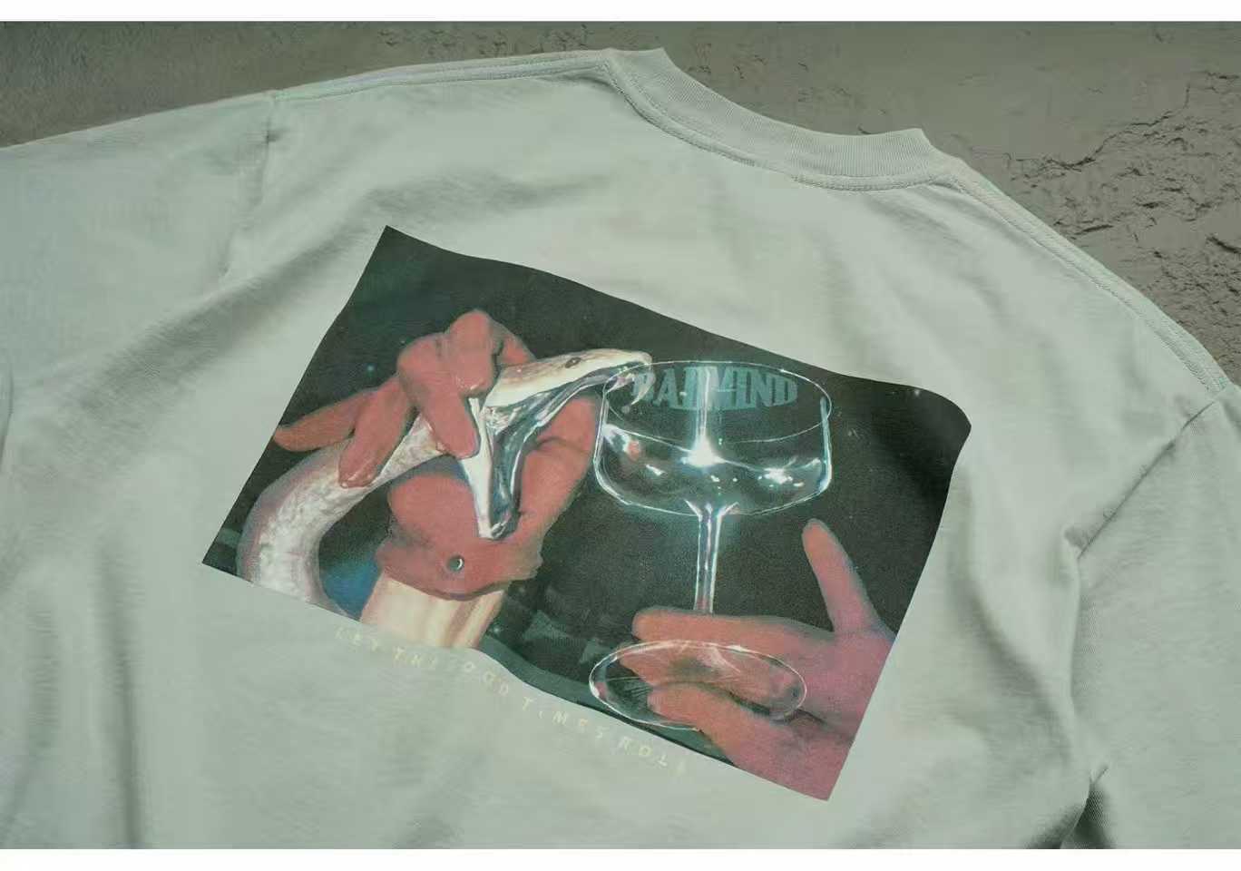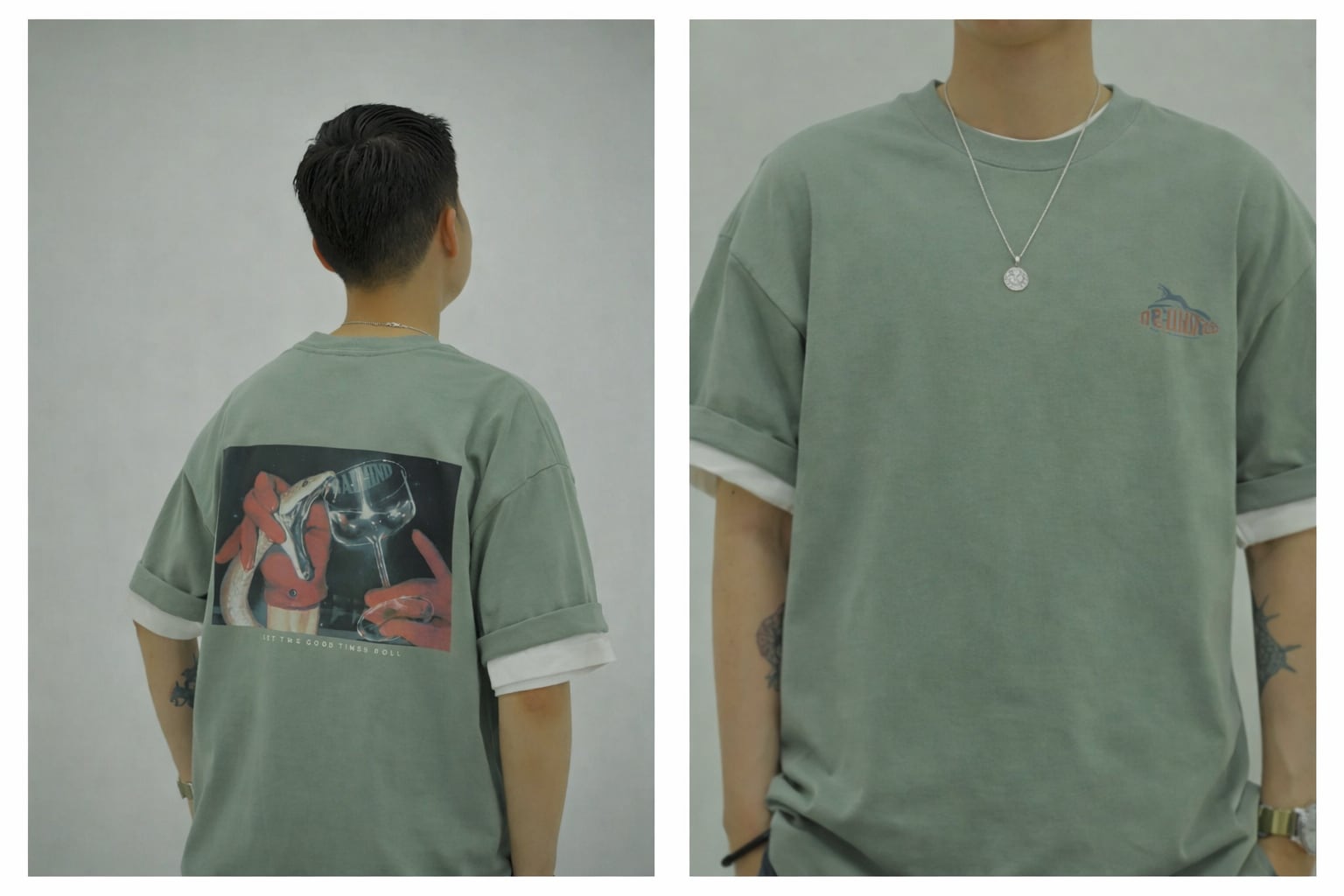 BADMIND 25SS「優雅な罪」ルーズシルエット ストリートTシャツ(Light Olive)