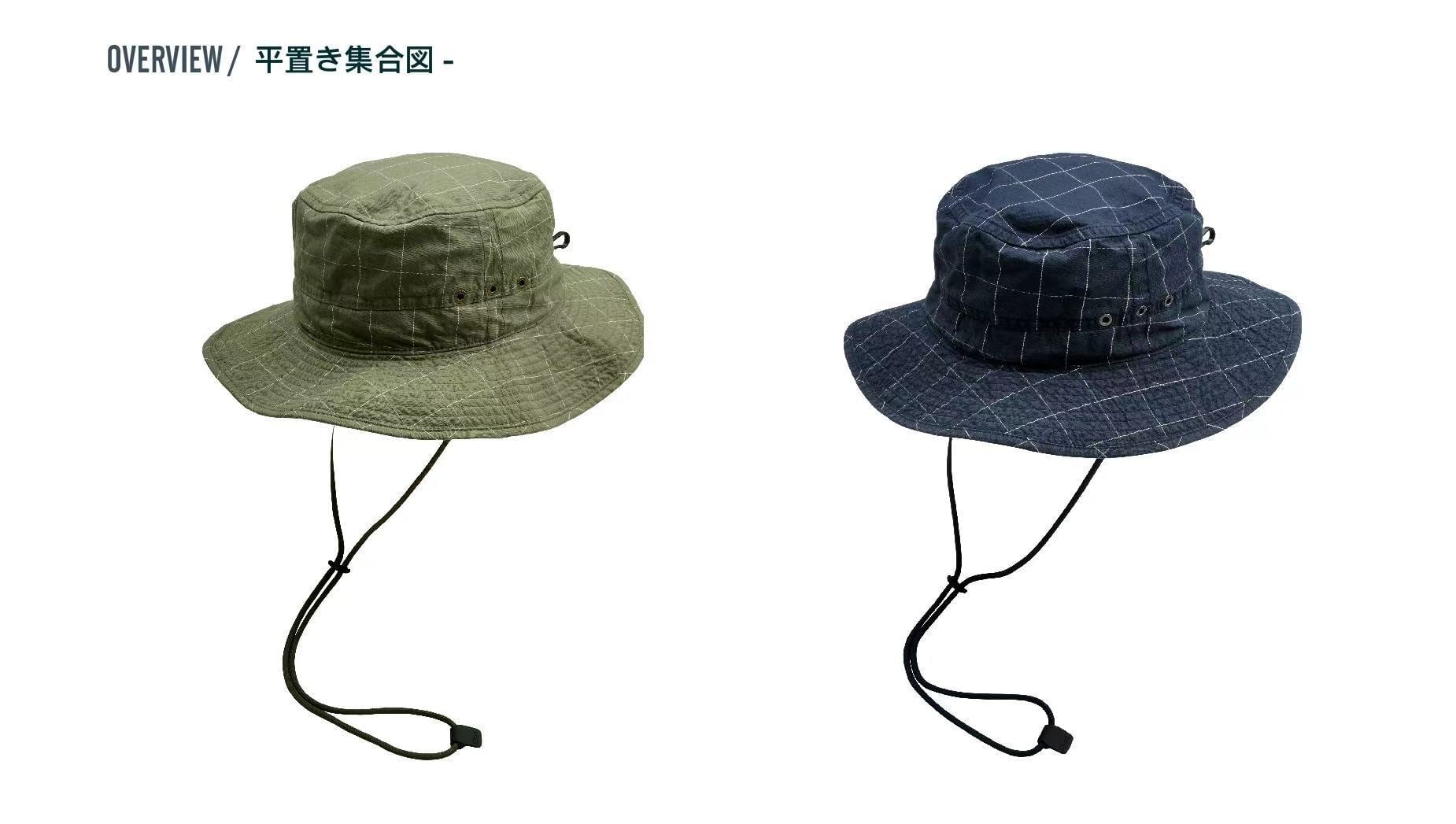 STRL 25SS 定織格子柄 調節可能 通気性ナイロン バケットハット(Checkered Navy)